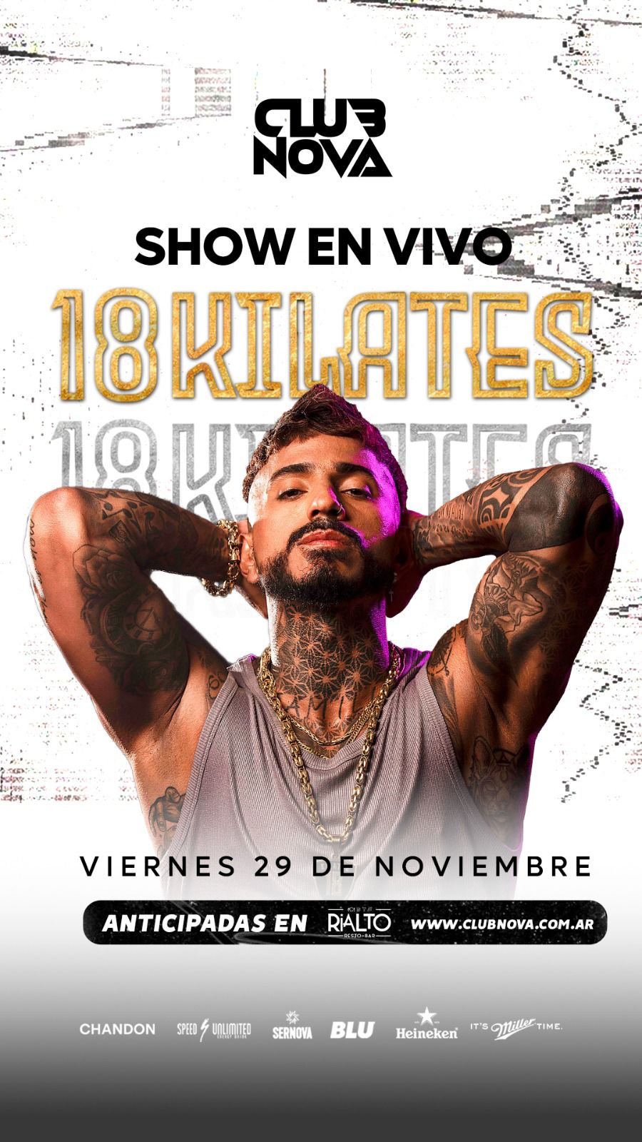 Los amantes de la buena música cumbiera están de fiesta. El próximo viernes 29 de noviembre, el mítico grupo 18 Kilates se presentará en un show exclusivo en el reconocido club Nova.