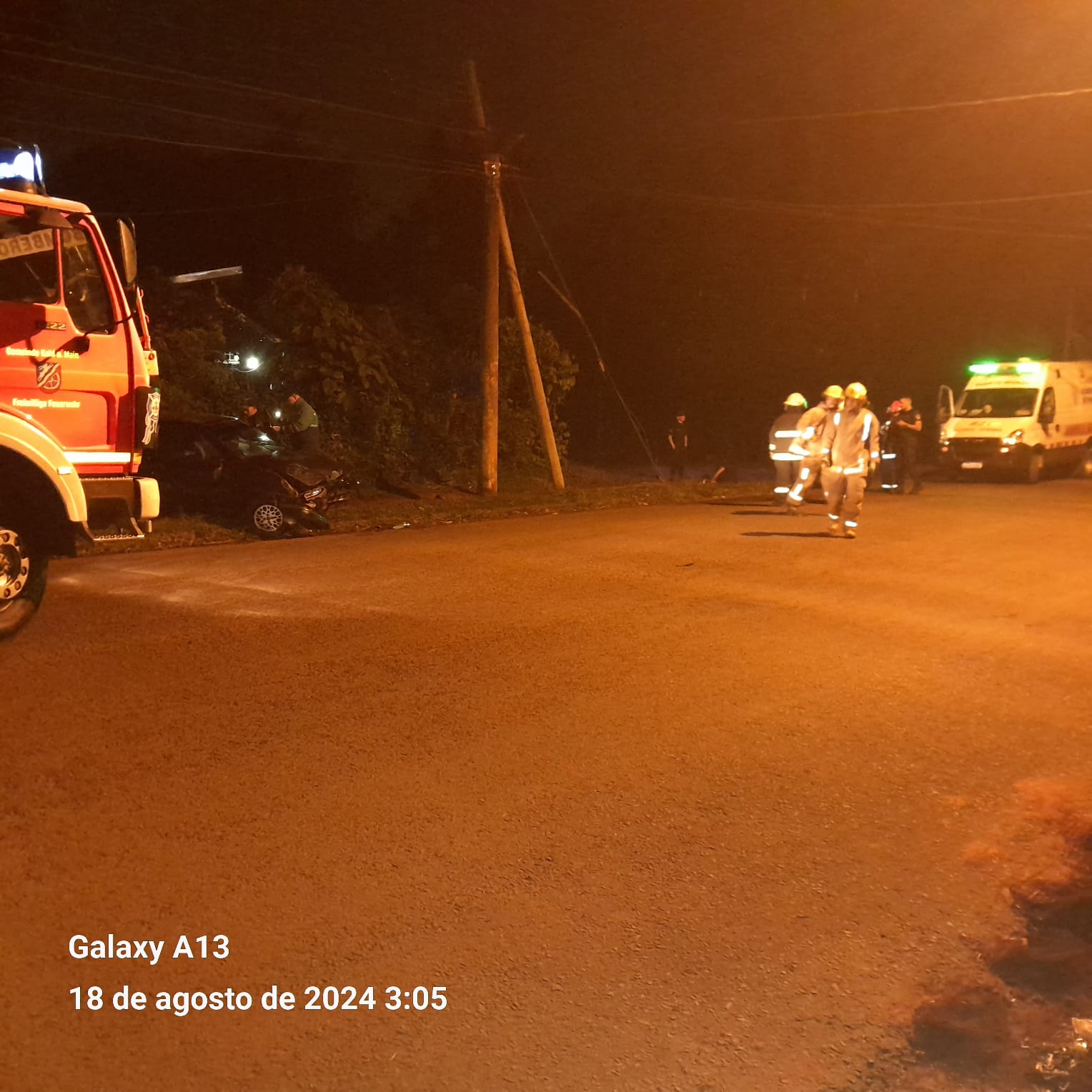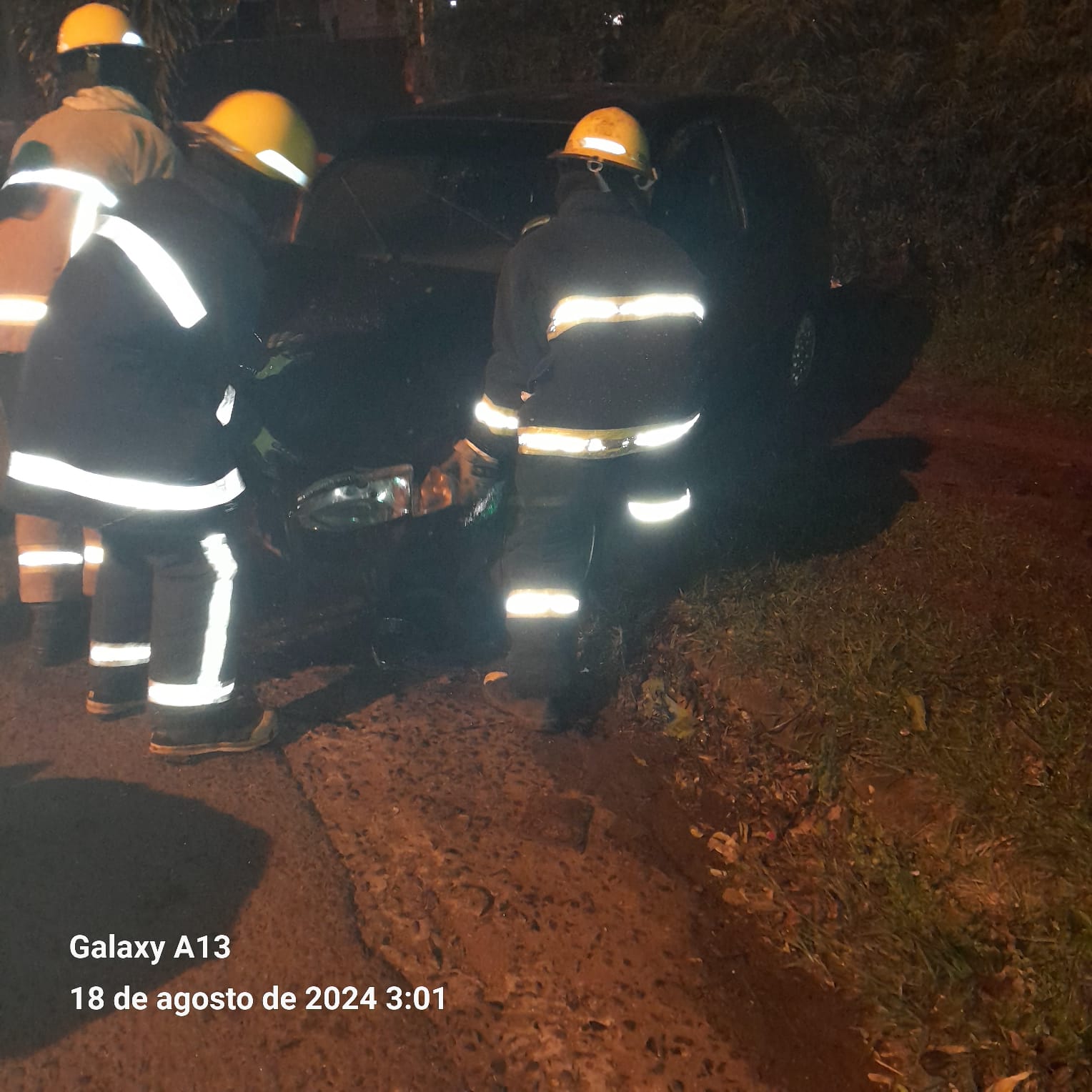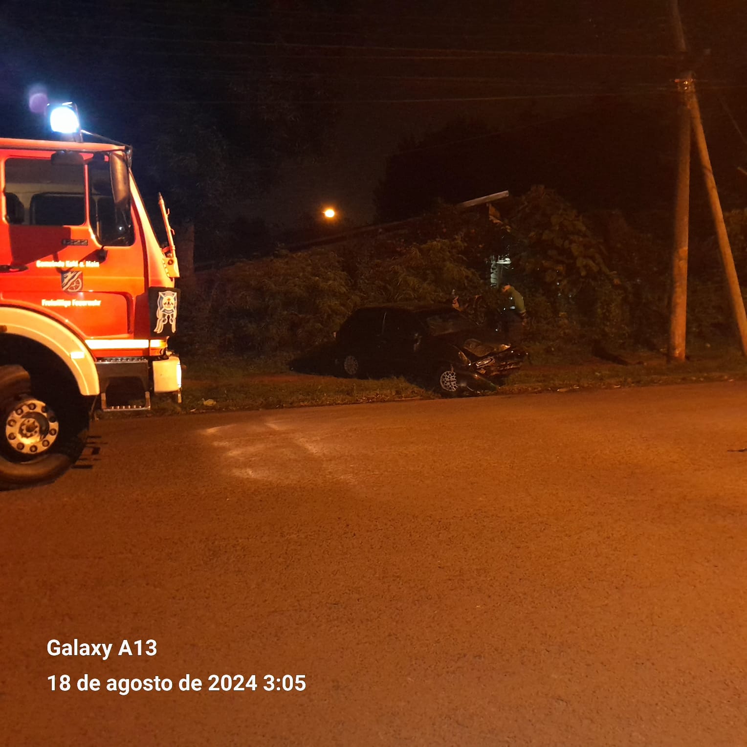 Siendo las 02:37 horas del día de hoy, domingo 18 de agosto la Guardia de Bomberos Voluntarios de Iguazu recibe denuncia de vuelco vehicular sobre la calle 9 de Julio y Jangadero con posible persona atrapada.