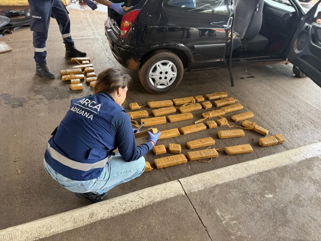 Por otra parte, en Puerto Iguazú, agentes aduaneros inspeccionaron un vehículo particular que llegó por vía fluvial desde Paraguay. En su interior viajaban dos ciudadanos brasileños. Durante el control, se detectaron alteraciones en los paneles traseros y el respaldo de uno de los asientos. Ante el nerviosismo de los ocupantes, el vehículo fue escaneado, y se hallaron objetos sospechosos. Tras una inspección manual, se encontraron 61 ladrillos de marihuana ocultos. El procedimiento estuvo a cargo del Juzgado Federal de Eldorado, que ordenó la detención incomunicada de los dos implicados.