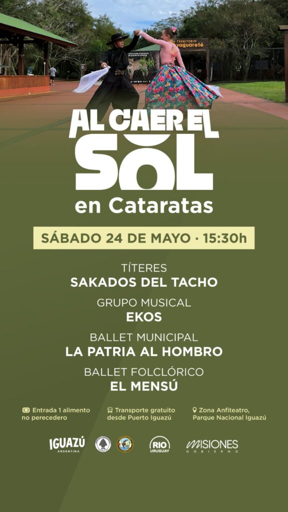 El próximo sábado 24 de mayo de 2025 se celebrará la segunda edición del evento cultural «segunda edición al caer el sol Cataratas» en conmemoración al 25 de mayo.