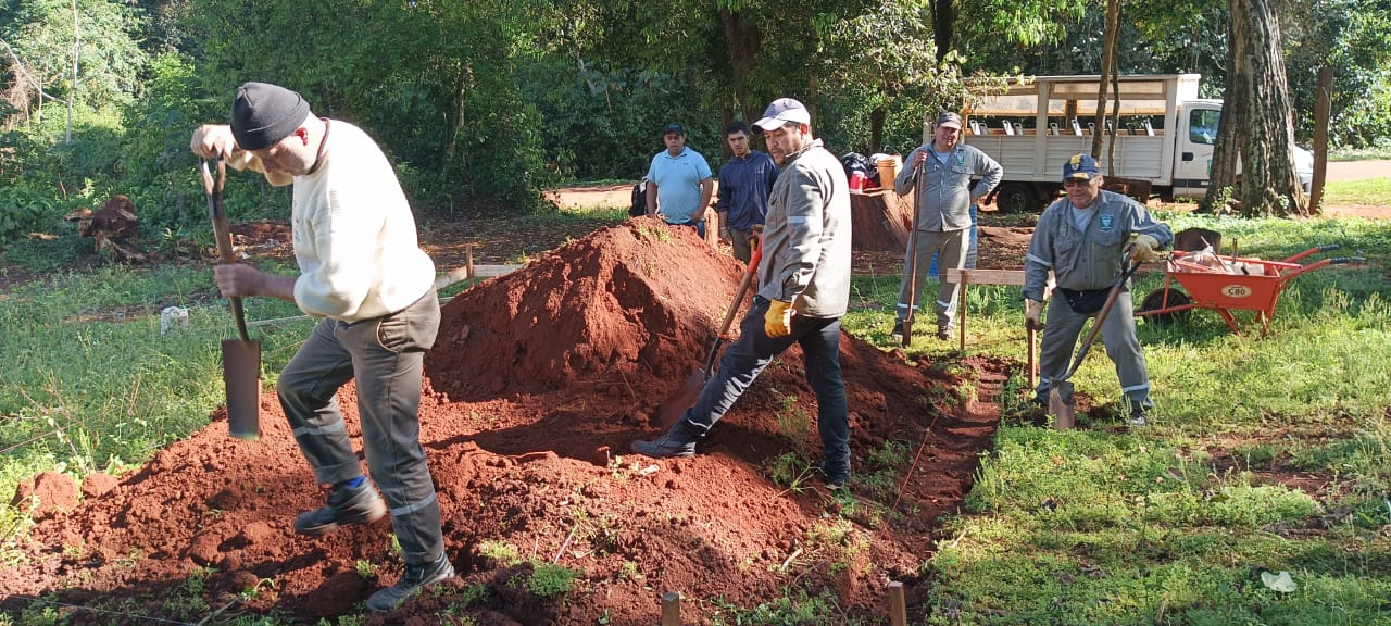 La Secretaria de Gobierno, junto a la Directora de Asuntos Guaraníes, se hicieron presentes en la Comunidad Tupa Mbae, donde el equipo de parquización del municipio, liderado por Julio Perón, ha comenzado los trabajos de acondicionamiento en el lugar.