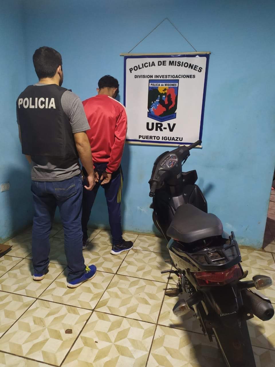 Por este motivo, los efectivos se trasladaron hasta allí, donde en inmediaciones al vecindario detuvieron al sindicado y secuestraron la moto robada que tenía en su poder. Finalmente, el detenido fue alojado en la Comisaría 2.ª a disposición del Juzgado de Instrucción Nro. 3 de Iguazú y el vehículo recuperado será restituido a su propietario.