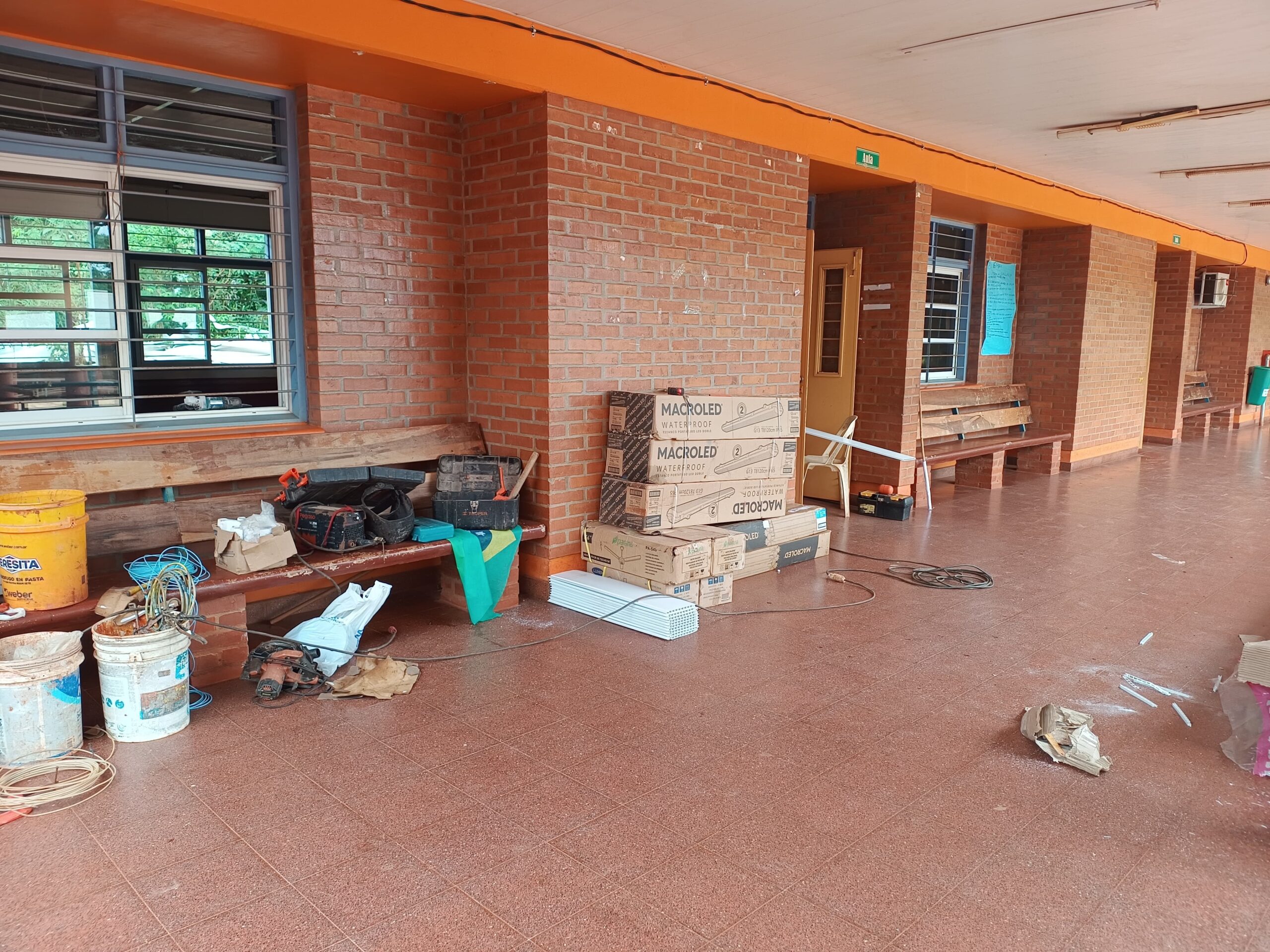 Las obras incluyen el reemplazo de los techos de pvc, la instalación de nuevos ventiladores, la restauración del sistema de iluminación y otras reparaciones necesarias para dejar las aulas en óptimas condiciones. Con estos avances, se espera que la comunidad educativa pueda retomar sus actividades en un entorno seguro y adecuado.