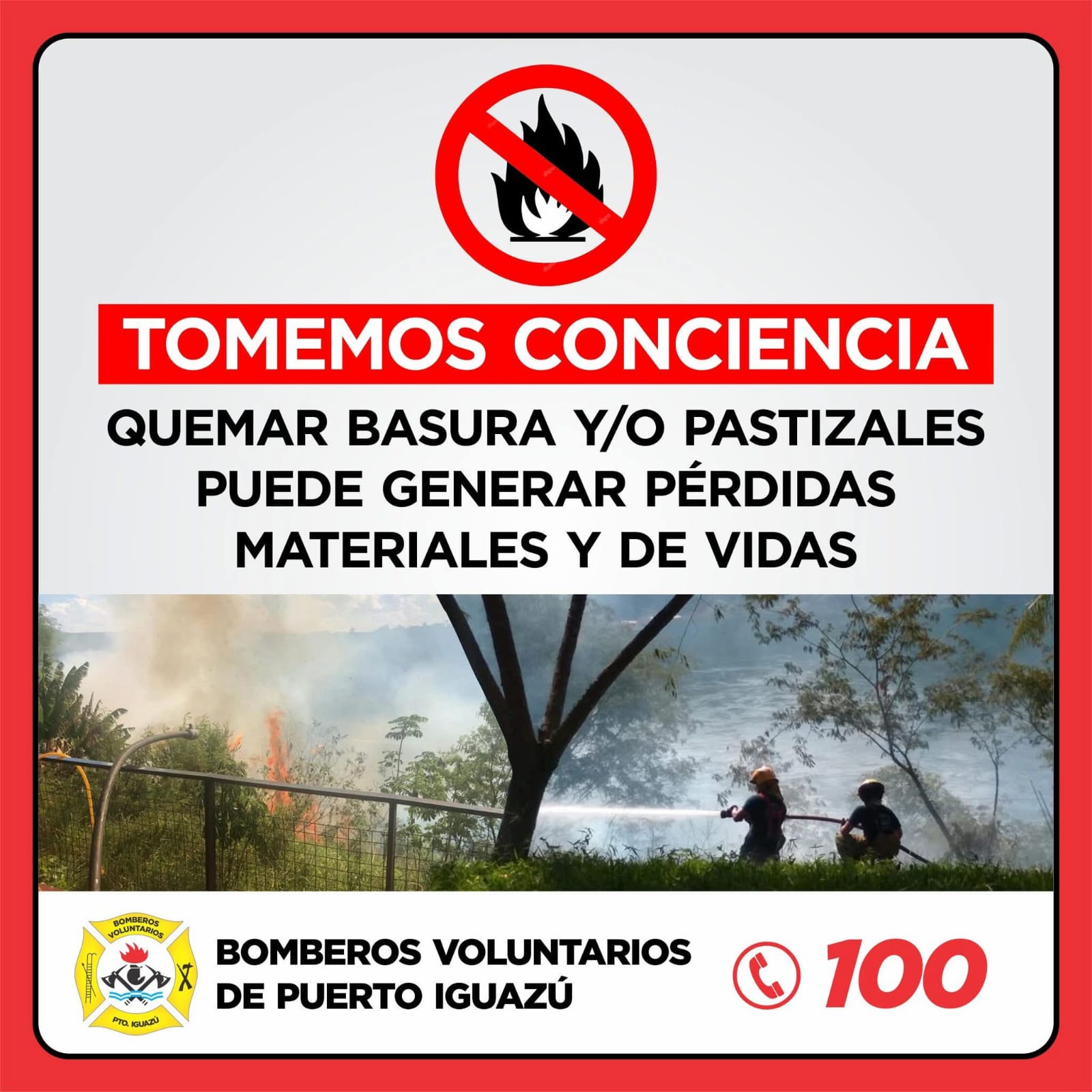 El Cuartel de Bomberos Voluntarios de Iguazú volvió a advertir a la comunidad sobre la prohibición absoluta de quemar basura, ramas, hojas o pastizales, una práctica que continúa generando situaciones de riesgo en distintos barrios de la ciudad.