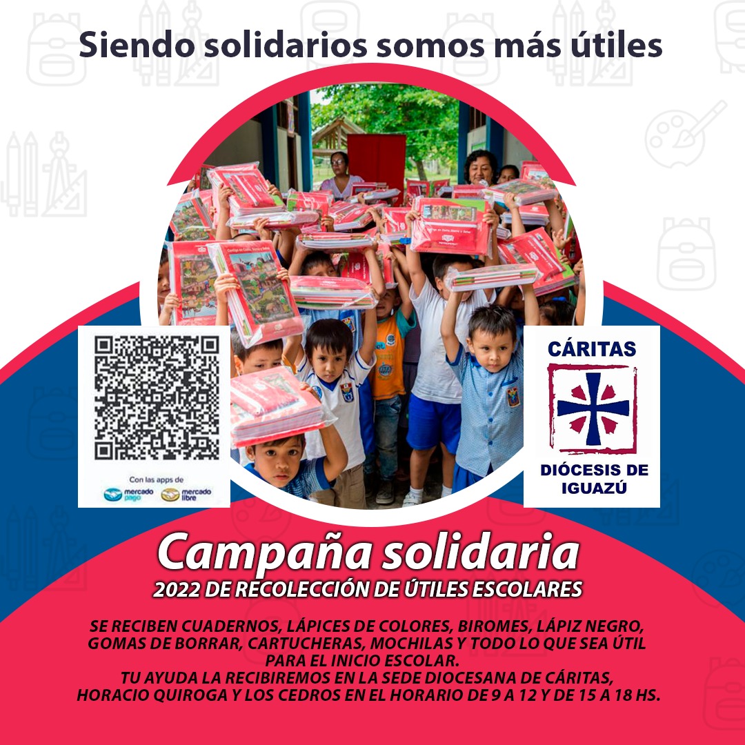 Luego de un año escolar atípico el país se prepara para el regreso a clases es por ello que Cáritas Diócesis de Iguazú comenzó – como todos los años, de cara al inicio del ciclo lectivo – una campaña de recolección de útiles escolares, bajo el lema «Siendo Solidarios somos más útiles».