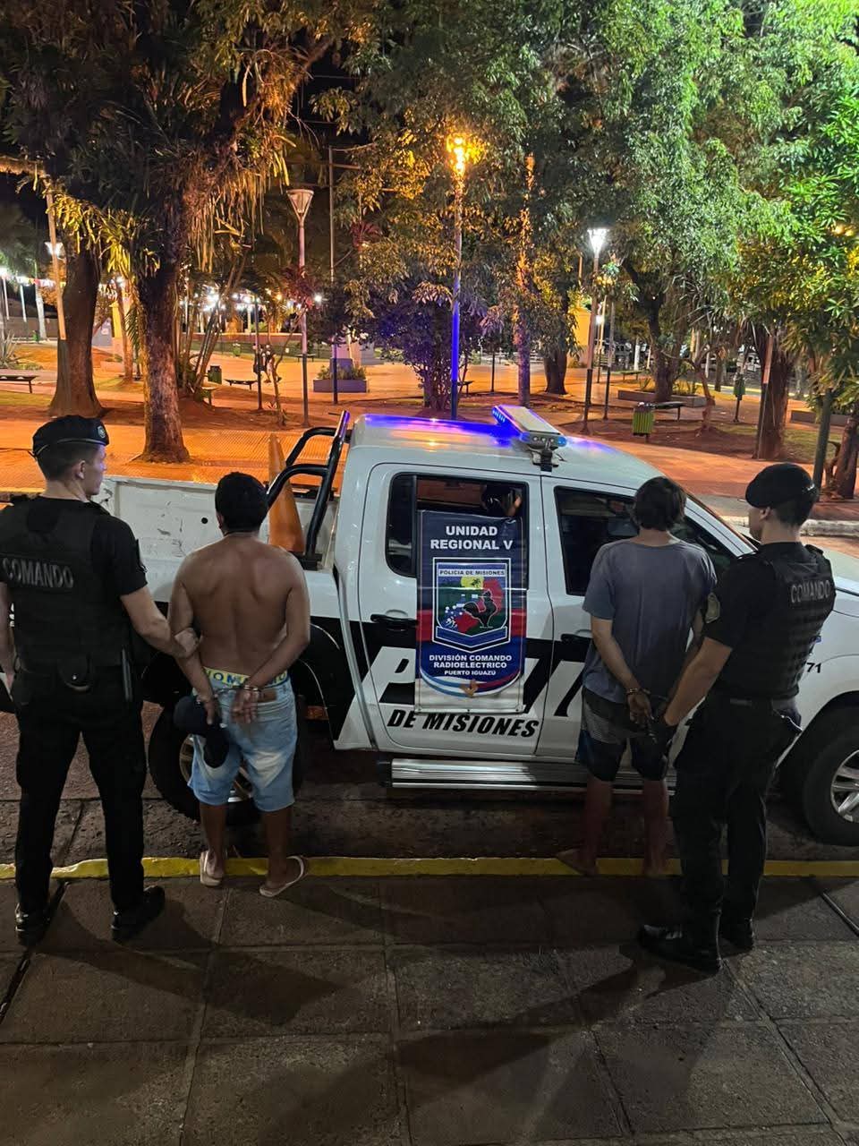El arresto se produjo mientras una comisión policial realizaba patrullajes preventivos en calles internas del barrio Riveras del Paraná. En ese momento, los uniformados detectaron a los dos sujetos intentando ocultarse detrás de un árbol para evitar ser vistos.