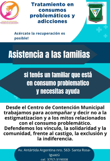 Ubicado en la Avenida Antártida Argentina 563, el Centro de Contención Terapéutico en Consumos Problemáticos y Adicciones brinda un espacio de acompañamiento y tratamiento para personas que atraviesan situaciones de consumo problemático, así como también para sus familias.