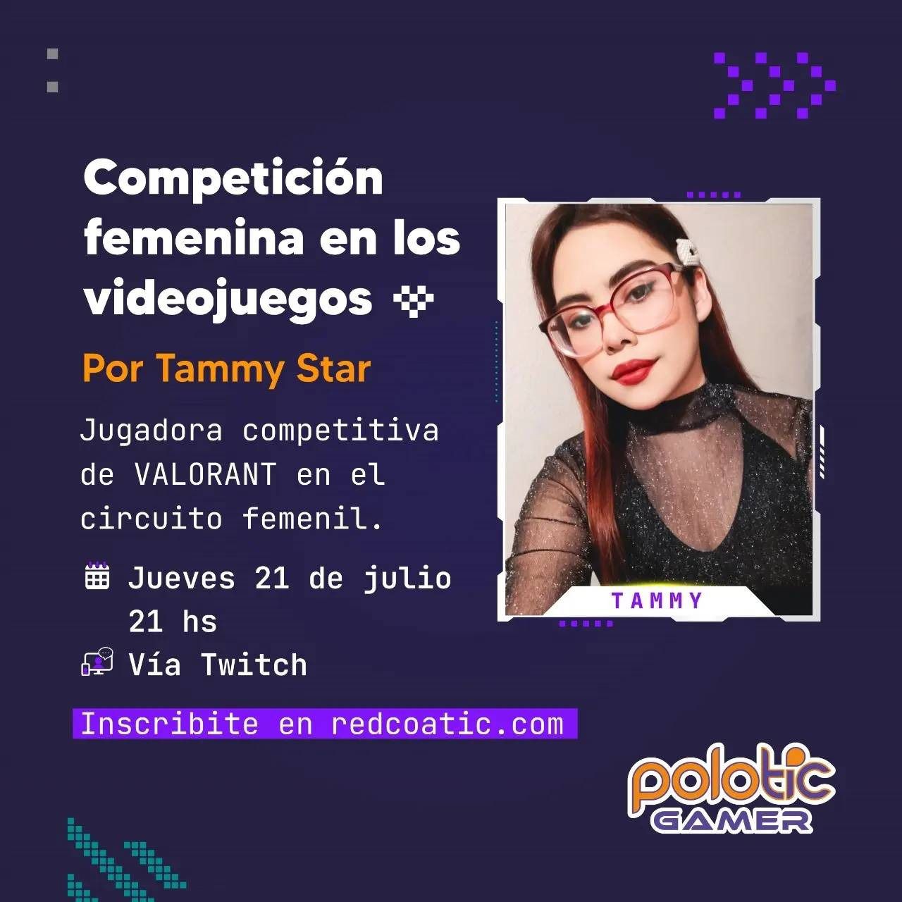Este jueves 21 de julio a las 21:00 h. el Polo TIC Gamer te invita a participar de una charla imperdible con Tammy Star, oriunda de México y jugadora profesional del videojuego VALORANT en el circuito femenil; quien será entrevistada por Lorena López, jugadora y conductora de “Multiplayer” un programa dedicado a la temática gamer.
