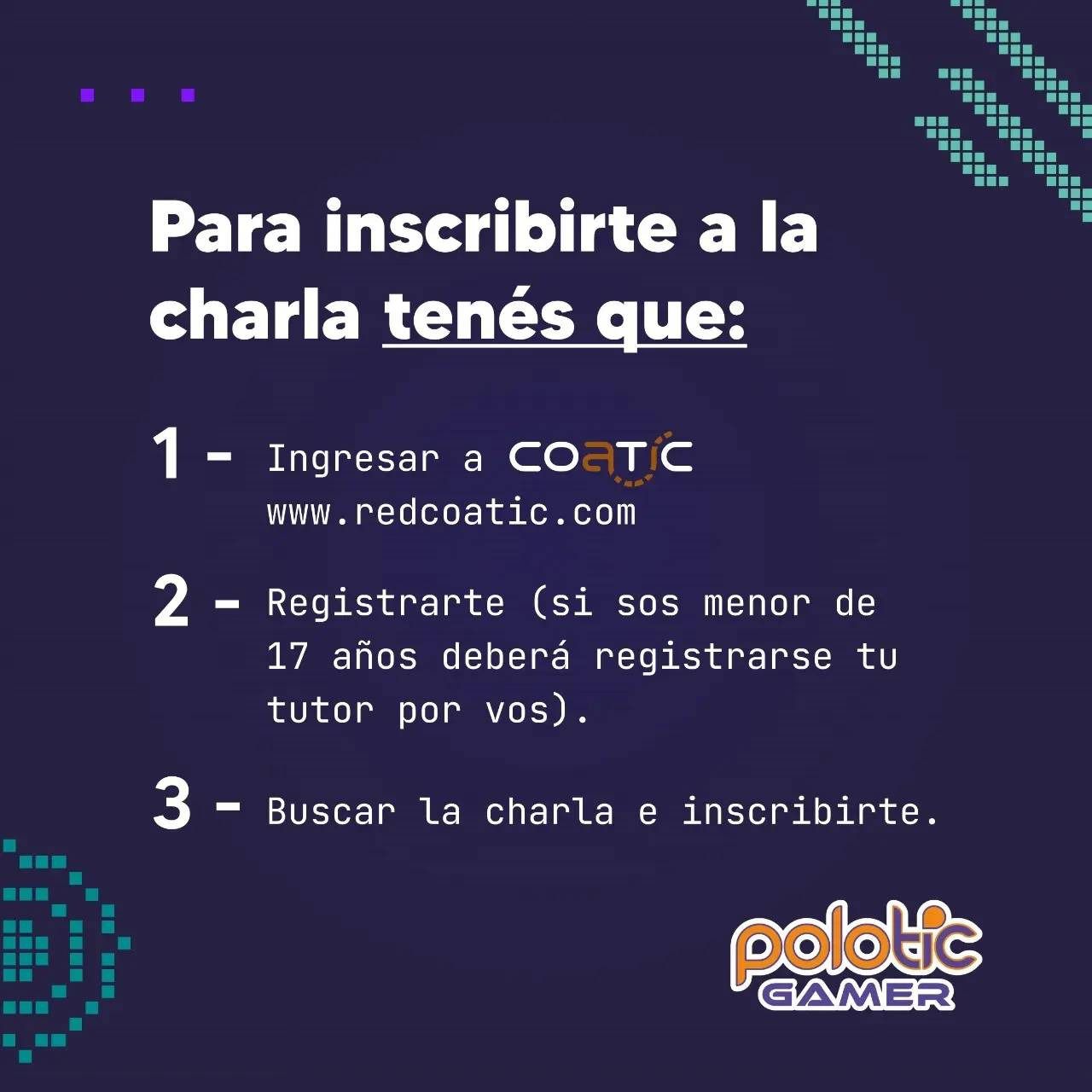 Para participar es necesario registrarse en la Red Coatic www.redcoatic.com .El día del evento recibirán por correo electrónico el enlace de conexión a la charla. Los menores de 17 años que quieran participar deberán registrarse con los datos de su tutor.