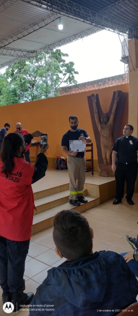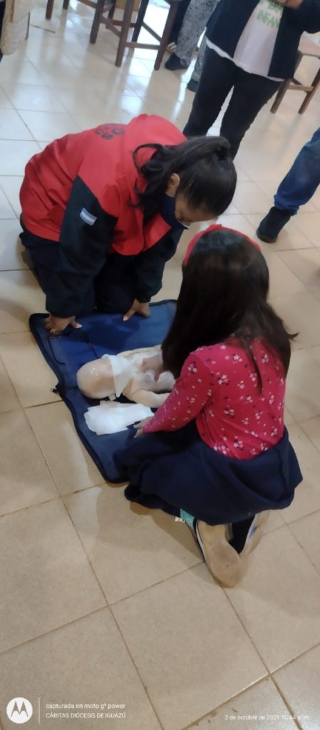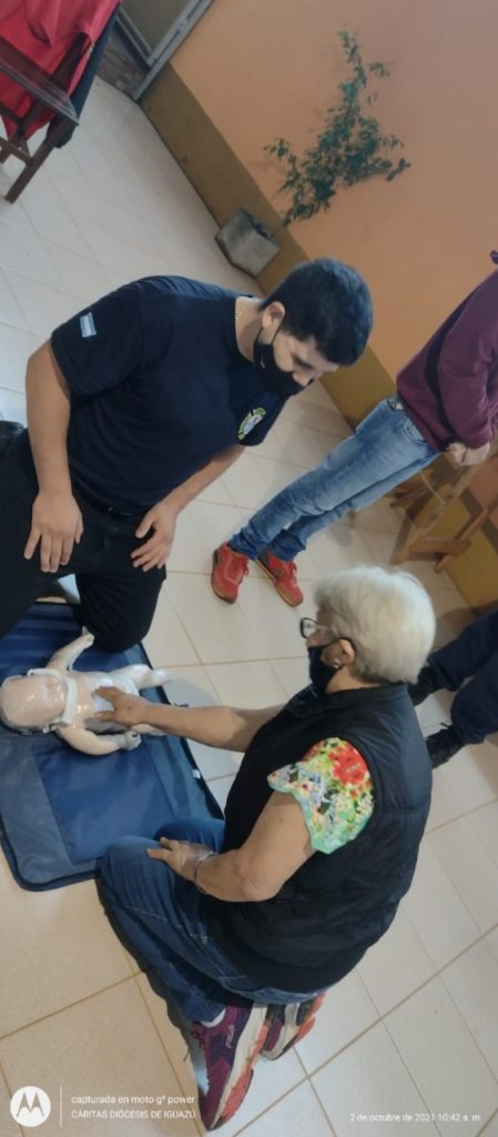 El día de hoy, sábado 2 de octubre, se llevó a cabo con el grupo de Sanidad de Bomberos Voluntarios de Iguazú una charla de RCP (Reanimación Cardiopulmonar) y OVA (Obstrucción de la Vía Aérea) para el grupo de voluntarias/os referentes de los merenderos de las Cáritas de la Zona Norte de la diócesis de Iguazú, en la Parroquia Cristo Redentor .