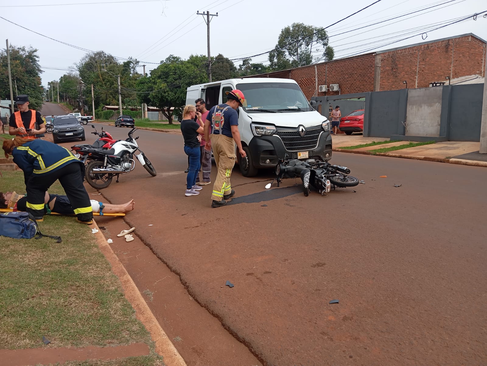 Al lugar acude una dotación, constatando la colisión entre una motocicleta 110 cc y una camioneta tipo furgón marca Renault.