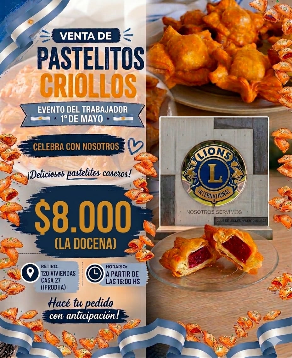 En el marco de sus constantes actividades para recaudar fondos destinados a obras comunitarias, el Club de Leones de Puerto Iguazú anunció el lanzamiento de su tradicional venta de pastelitos para este próximo miércoles 1 de mayo, coincidiendo con las celebraciones por el Día del Trabajador.