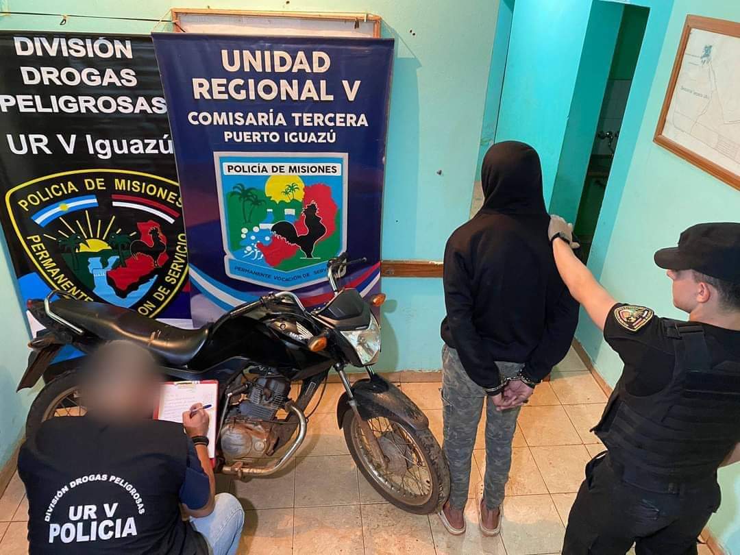 La intervención tuvo lugar en la noche de ayer, cuando agentes antidrogas de la Unidad Regional V realizaban un seguimiento para detener a un presunto distribuidor de drogas. Es así, que lograron ubicarlo en cercanías a la zona denominada 2000 hectáreas de Puerto Iguazú. En forma inmediata se desplegaron patrullas en los alrededores y lo arrestaron con 100 dosis de cocaína (pedra), valuada en 200 mil pesos.