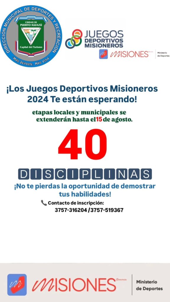 En Puerto Iguazú siguen abiertas las inscripciones hasta el 15 de Agosto en la Dirección Municipal de Deportes sito en el Polideportivo Municipal en el horario de 7.00 a 12,30 Hs.
