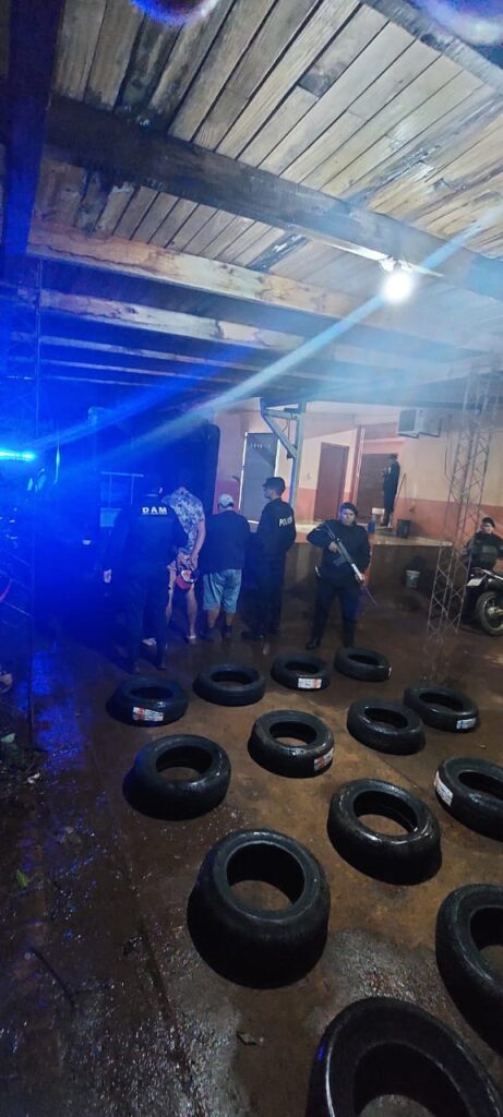 Ante la Intercepción de una camioneta, la misma aceleró su marcha a fin de colisionar al patrullero, en la evasión y a fin de evitar lesionados terminaron despistando y golpeando con un poste. Igualmente, secuestraron el rodado cargado con una gran cantidad de neumáticos y detuvieron al conductor junto a su acompañante.