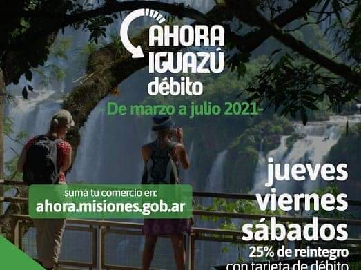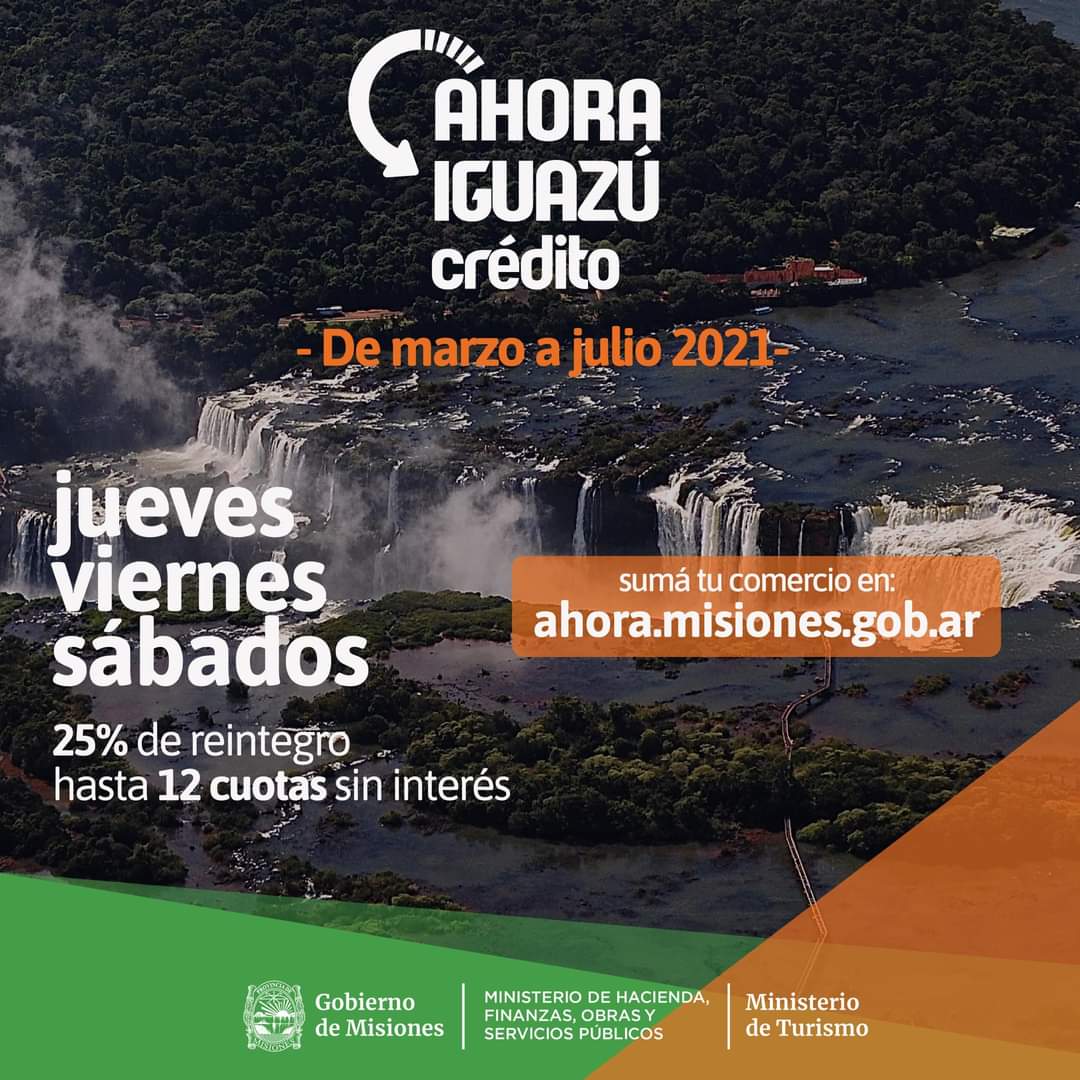 Específicamente, el programa se divide en dos líneas, el primero “Ahora Iguazú Crédito” para compras, realizadas con tarjeta de crédito, que podrán realizarse hasta en 12 cuotas con un monto tope de operaciones de $100.000,00, y un reintegro del 25% con tope mensual de $ 4.000, incluye las actividades de los programas “Ahora Misiones”, “Ahora Bienes Durables”, “Ahora Turismo” y “Ahora Gastronomía”. En cambio, el “Ahora Iguazú Débito” tendrá un reintegro del 25 % con un tope de $1500 de reintegro por mes por cuenta para compras con tarjeta de débito, incluyen las actividades comprendidas en “Ahora Góndola”, “Ahora Pan”, “Ahora Carne” y “Ahora Gastronomía”.