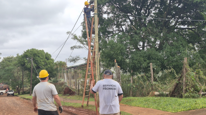 Sergio Servín, responsable del área técnica, informó que durante la jornada anterior estuvieron trabajando en las zonas de Barrio Las Orquídeas y Barrio Hermoso. Hoy, los trabajos se concentran en Barrio Almirante Brown y Villa Nueva, donde se están reemplazando más de 500 metros de fibra óptica que fueron derribados por la caída de árboles. «Estamos avanzando en la normalización del servicio», señaló.