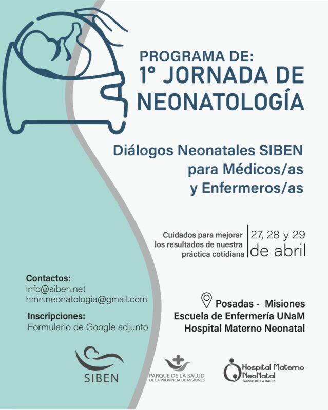 Del 27 al 29 de abril se desarrollará, en Posadas, la Primera Jornada de Neonatología “Diálogos Neonatales de la Sociedad Iberoamericana de Neonatología para médicos/as, enfermeros/as”, organizada por el Hospital Materno Neonatal de Misiones con la Sociedad Iberoamericana de Neonatología (SIBEN), en el auditórium de la Escuela de Enfermería de la UNaM.