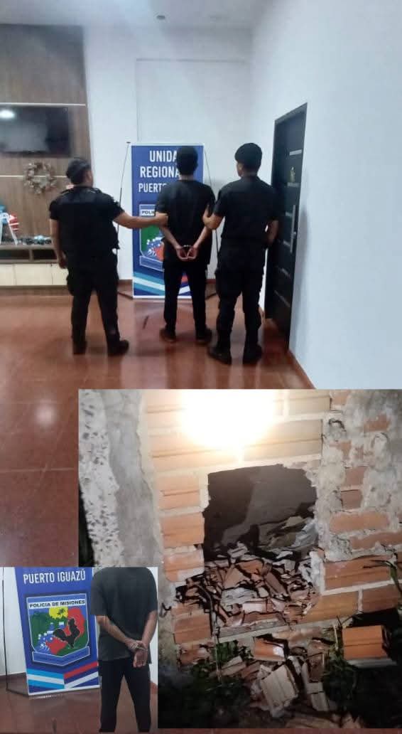 Una patrulla recorría preventivamente la zona cuando observó a dos masculinos en «pleno robo», a la voz de alto los desconocidos se dieron a la fuga emprendiendo veloz huída en distintas direcciones tras una persecución uno de ellos fue detenido. La policía constató que los sospechosos intentaban ingresar a un comercio lindante a una entidad bancaria a través de un boquete que realizaron en la parte posterior del edificio lugar donde además se procedió al secuestro de una barreta de hierro que fue dejado por los sospechosos.