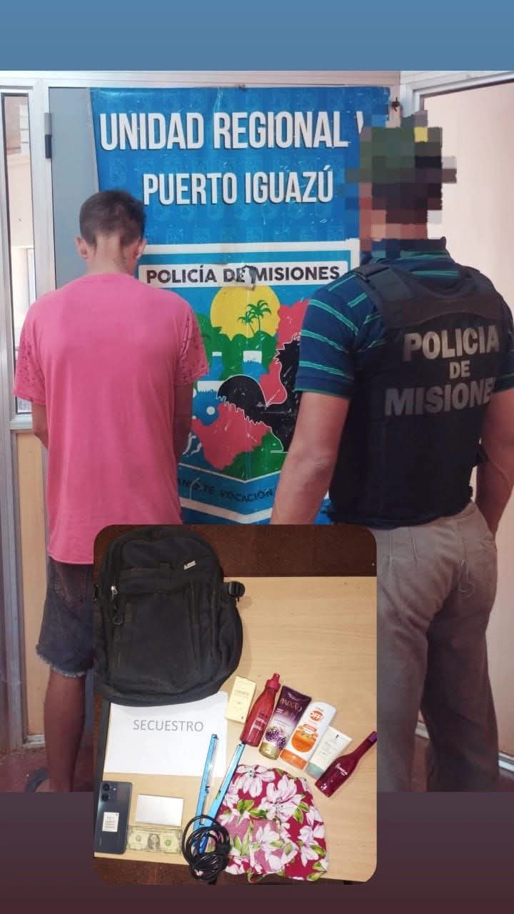 El hecho había sido reportado en las últimas horas ante la comisaría de Wanda donde la damnificada una mujer de 35 años alertó a la comisión policial que momentos antes dejo estacionado su vehículo sobre la avenida República Argentina del cual desconocidos lograron sustraer del interior de su vehículo una mochila que contenía elementos personales como así un dispositivo móvil. Por lo que personal encubierto de la División Investigaciones con apoyo de la comisaría jurisdiccional obteniendo información específica a través de las cámaras de seguridad de la zona lograron obtener las características del sospechoso quien a las pocas horas fue identificado.