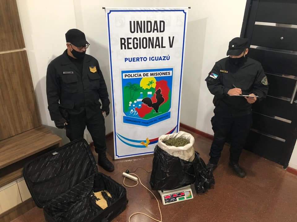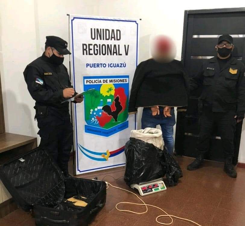 La Policía de Misiones detuvo esta madrugada a un hombre de 38 años de nacionalidad Paraguaya que trasportaba una valija con más de 10 kilos de cogollos de marihuana.
