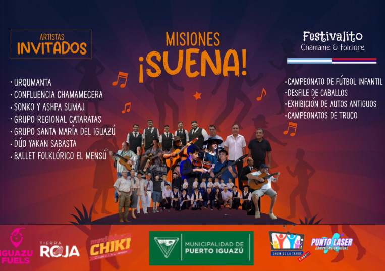 El festival contará con la participación de reconocidos artistas como Urqumanta, Confluencia Chamamecera, Sonko y Ashpa Sumaj, Grupo Regional Cataratas, Grupo Santa María del Iguazú, el Dúo Yakan Sabasta y el Ballet Folklórico El Mensú, ofreciendo un recorrido musical que abraza las raíces litoraleñas.