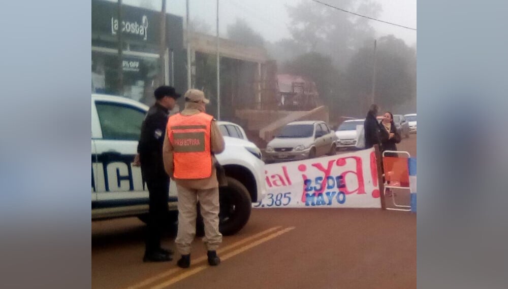 El otro cúmulo de docentes en protesta se concentra en la ciudad de Posadas, donde partieron desde el Mástil y bajaron por la avenida Uruguay hasta Trincheras de San José y luego se unieron a la manifestación policial nuevamente frente al Comando Radioeléctrico