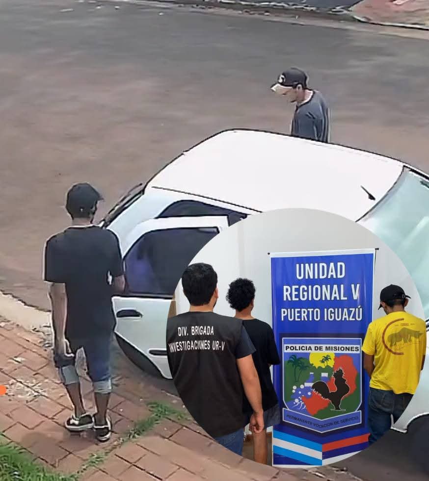 La Policía de Misiones detuvo a dos hombres con antecedentes delictivos, identificados como Jorge B. (42), conocido como “Cara Manchada”, y Mauro V. (36), luego de ser captados por cámaras de seguridad mientras sustraían objetos de un vehículo estacionado sobre la calle Río Paraná, en el barrio Villa Nueva.