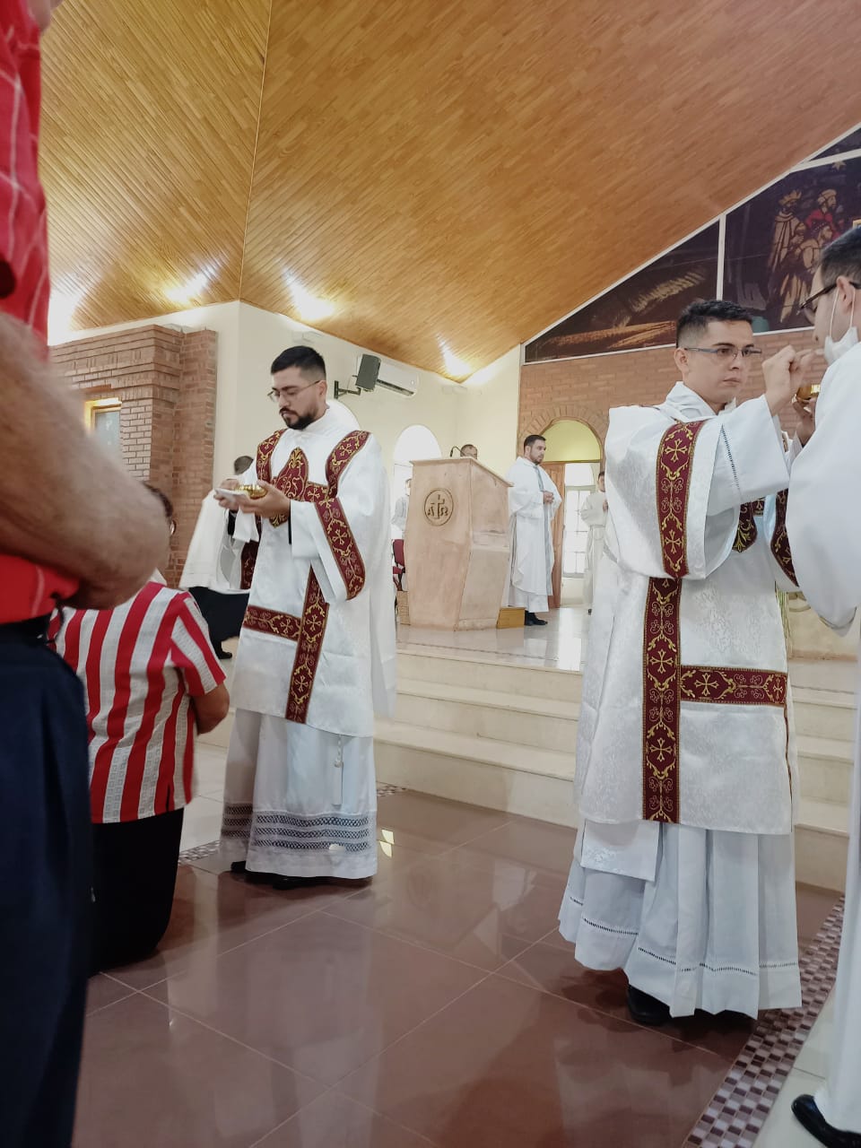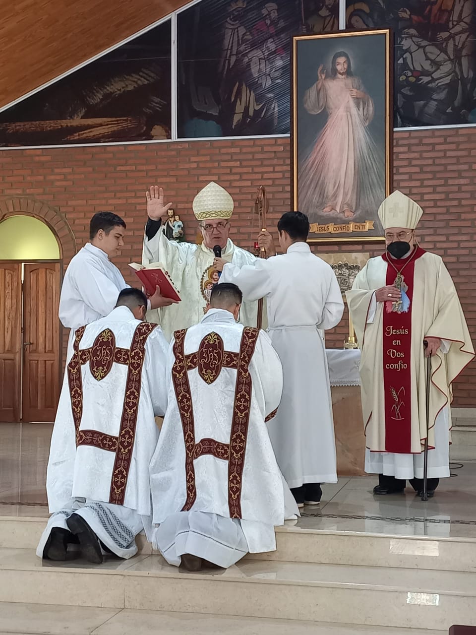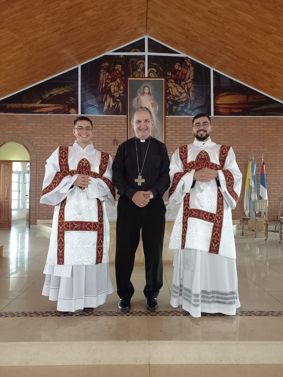 Hoy sábado 19 en la que, la comunidad católica celebra la solemnidad de San José estos seminaristas, Pedro oriundo de la localidad de San Pedro y Enrique de la vecina ciudad de Wanda, recibieron el primer grado del Orden Sacerdotal, es por ello que su diaconado es transitorio.