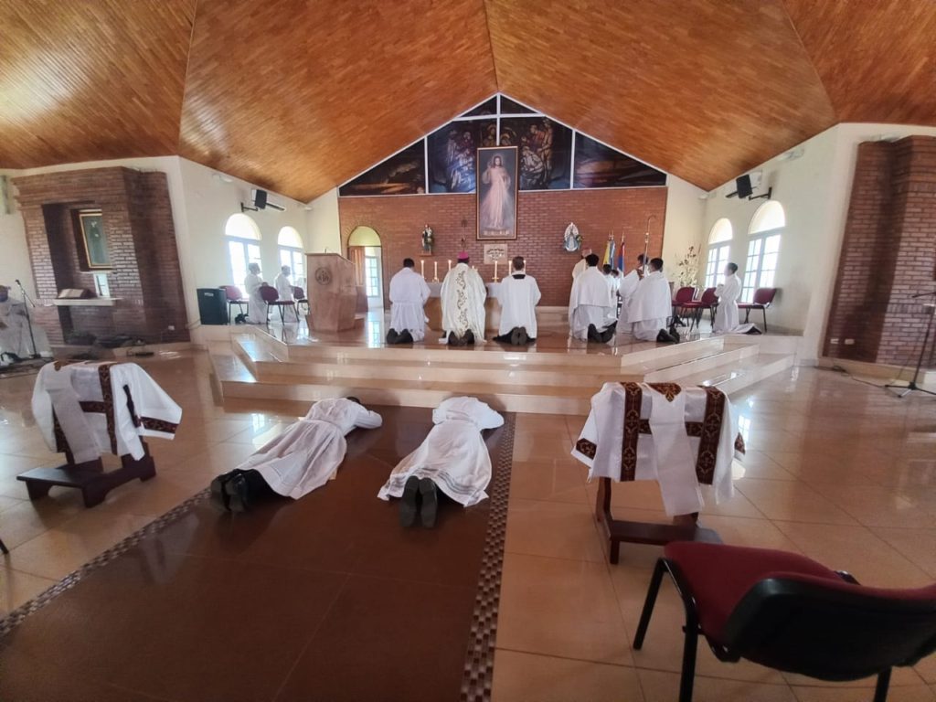 Pedro Amarilla (27) y Enrique Ferreira (25) son los jóvenes de la Casa de Formación Sacerdotal San José, de Iguazú que recibieron el Sagrado Orden del Diaconado. La celebración tuvo lugar en el Santuario de la Divina Misericordia a las 10:00 horas y fue presidida por el obispo de la Diócesis Mons. Nicolás Baisi.