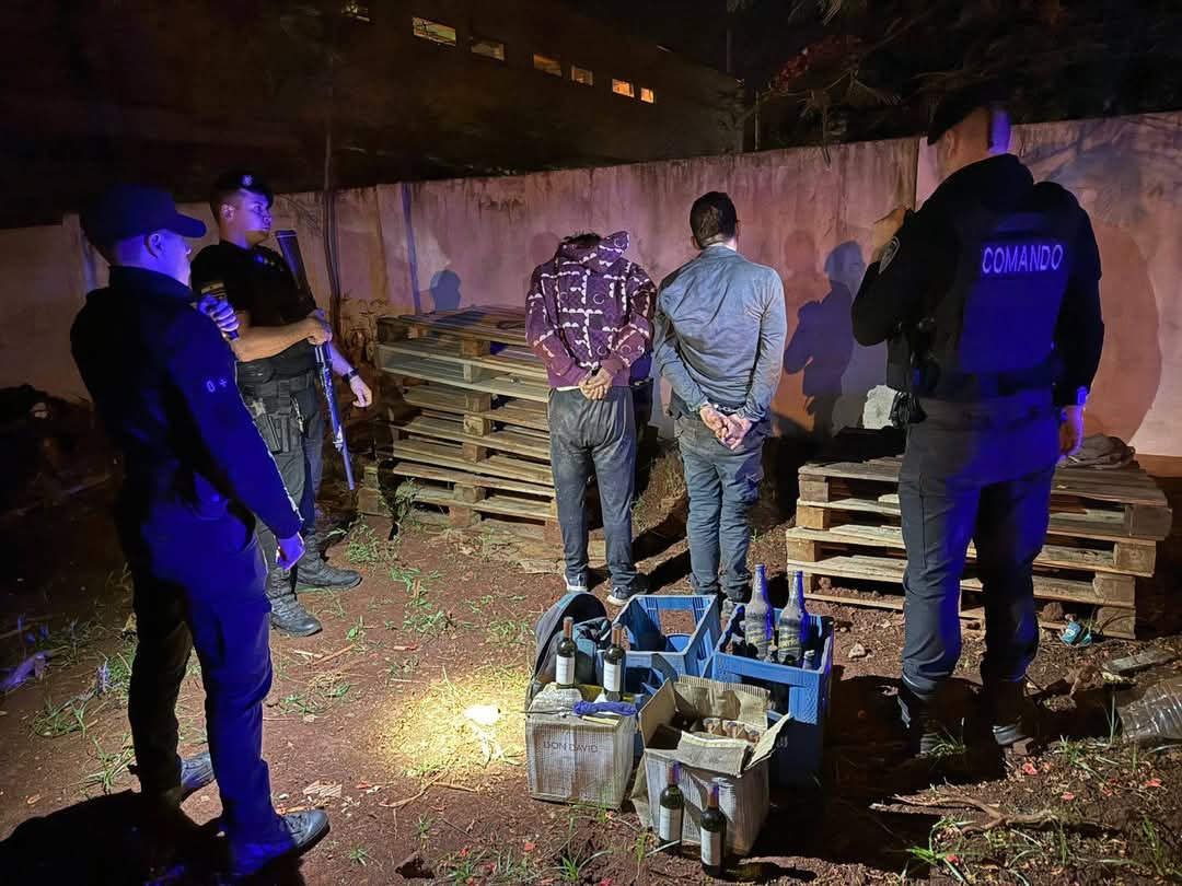 Ambos masculinos fueron vistos dentro del predio con intenciones de salir del lugar al notar la presencia de los Uniformados intentando hacerlo a través del Boquete realizado además en su poder se secuestro dos cajas de vino, una caja de cerveza vacía y dos vinos.