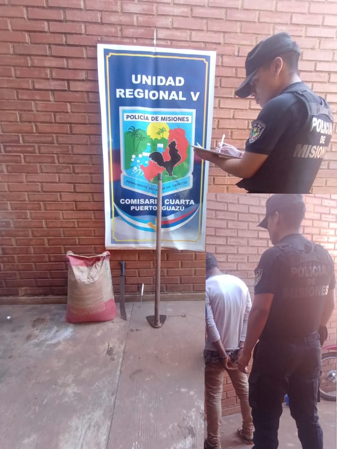 Durante la jornada del domingo en calles internas del barrio Las Palmeras de esta ciudad, efectivos de la comisaría Seccional 4ta URV detuvo a un hombre de 29 años quien iba acompañado de un jovencito de 16 años y en su poder incautaron una asada, un machete y una bolsa de cemento.