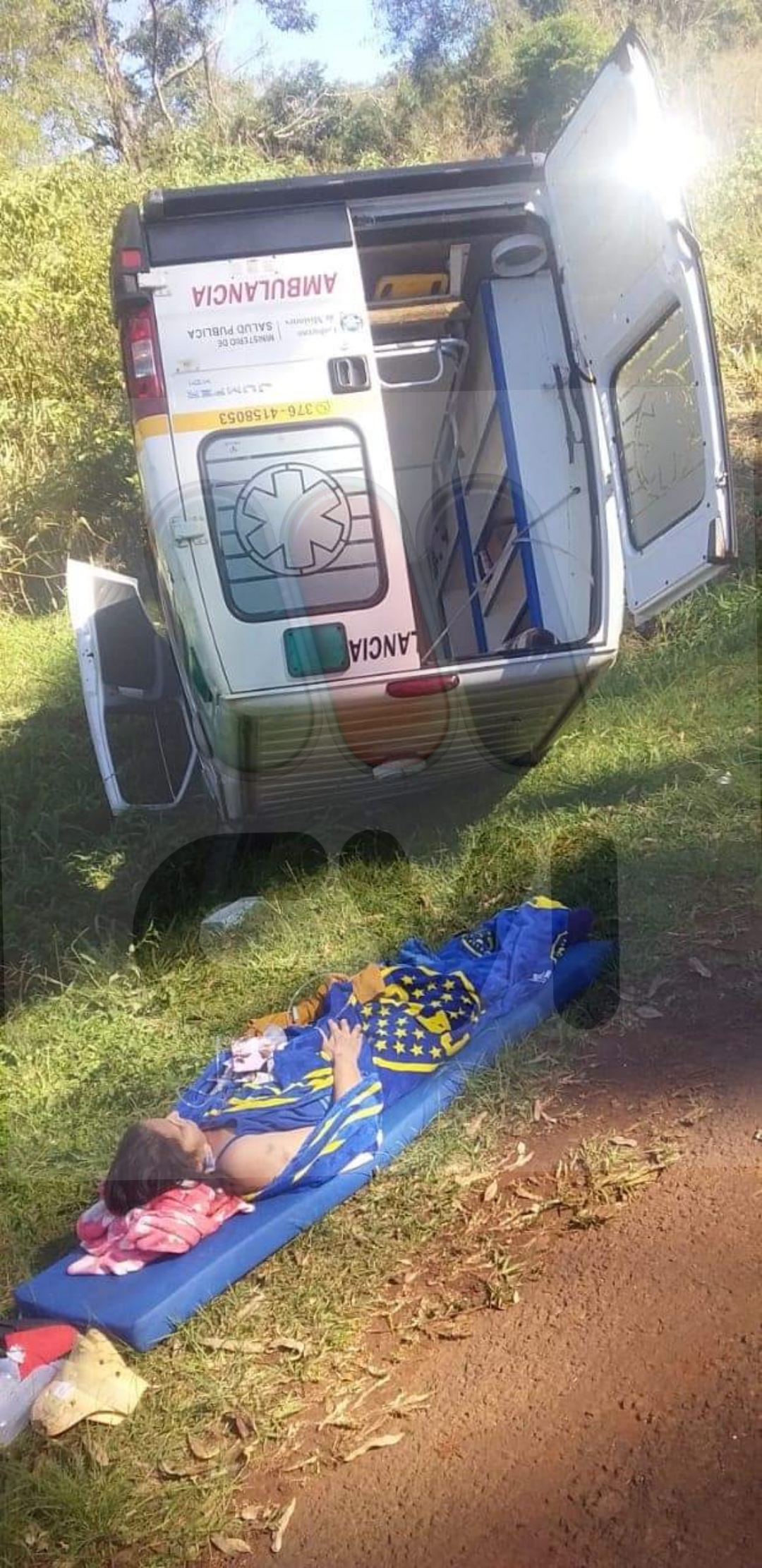 Una ambulancia que trasladaba a una mujer embarazada con rotura de bolsa desde la ciudad de Alcázar, por motivos que se desconocen, despistó en una curva de la Ruta Nacional n°12 en el acceso a la mencionada ciudad.
