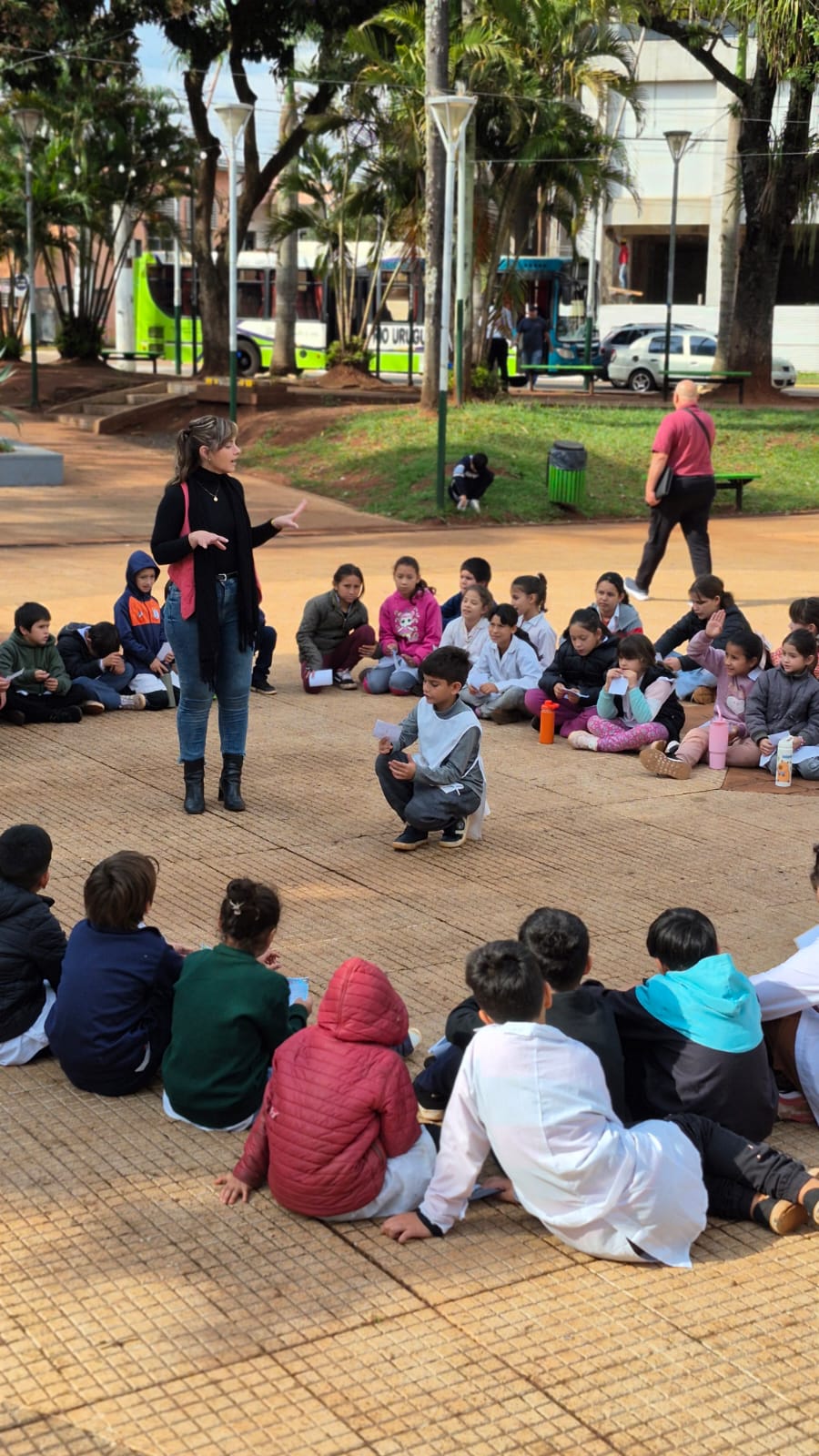 La iniciativa, que cuenta con el acompañamiento de la empresa Río Uruguay, busca acercar a la comunidad una experiencia educativa y recreativa diferente. En diálogo con CVI, Avelina Vizcaychipi, encargada del proyecto, explicó que la propuesta consiste en trasladar a los estudiantes desde los establecimientos educativos hasta la Plaza San Martín, donde se desarrollan actividades recreativas y culturales.