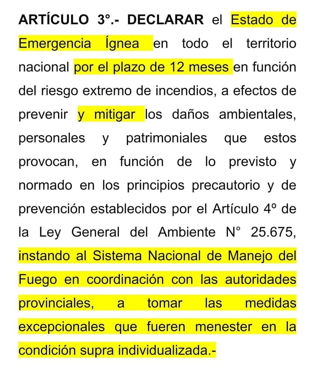 El Consejo Federal de Medio Ambiente declaró este martes la «Emergencia Ígnea» por 12 meses en todo el territorio nacional debido al riesgo extremo de incendios, a efectos de prevenir y mitigar daños ambientales, personales y patrimoniales; y solicitó al Ejecutivo nacional acompañar tal decisión.
