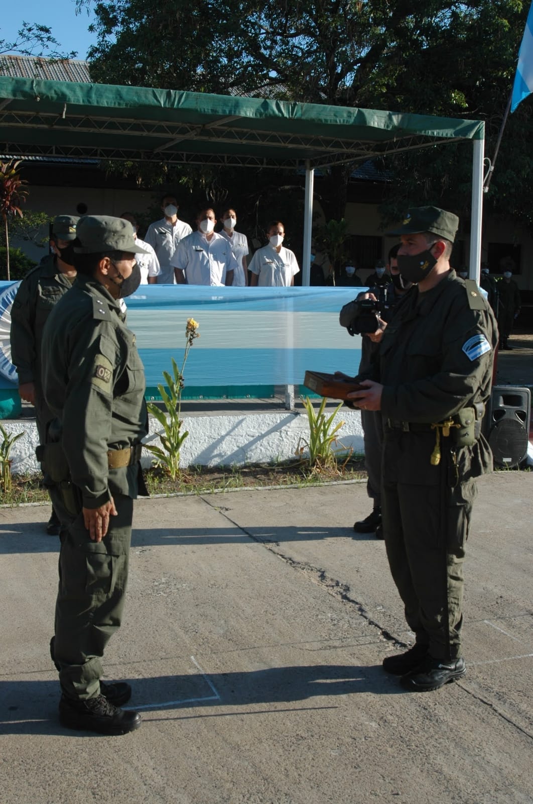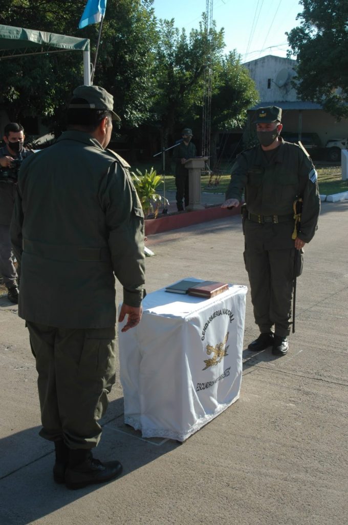 El Jefe de Agrupación III “CORRIENTES”, Comandante Mayor Daniel Esteban Vallejos, fue el encargado de tomar juramento a la Constitución Nacional y los Santos Evangelios al Comandante Romero.