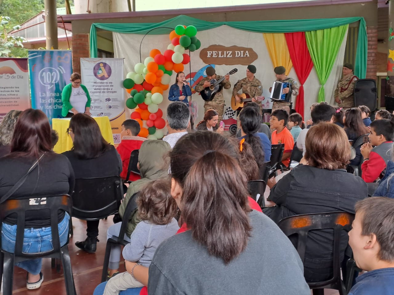 Los presentes celebran el cumpleaños de la institución con la presentación de la Banda Musical de la Escuela de Monte del Ejército Argentino y la Banda Musical del Servicio Penitenciario; además de actividades recreativas especiales y juegos, con la presencia de las autoridades locales y provinciales, el Director del Hogar de Día Ricardo Romero, el Subsecretario Ramón Padilla y demás invitados.