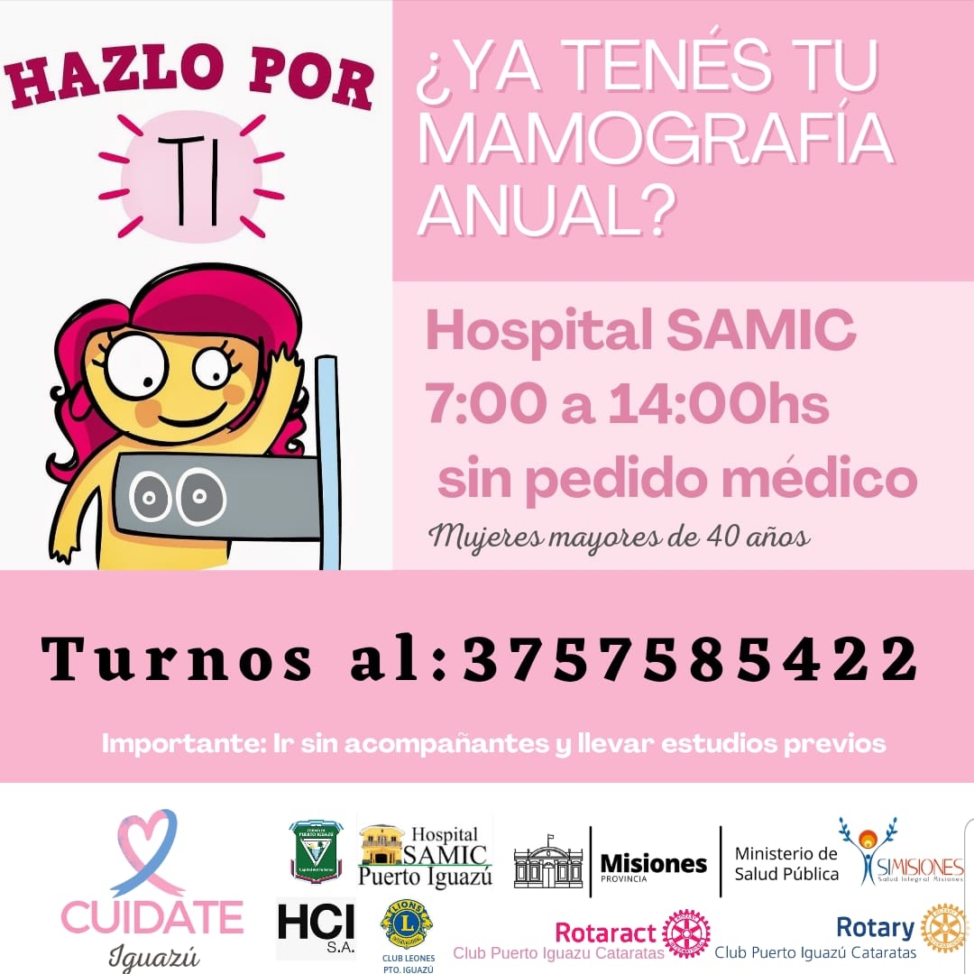 En Iguazú y en el resto de la provincia se realizaran diversas actividades en diferentes localidades través de los CAPS y Hospitales impulsado por el Programa Provincial de Prevención del Cáncer de Mama del Ministerio de Salud Pública y con la colaboración de los centros de salud, hospitales, instituciones publicas y privadas, ONGs, entre otras.