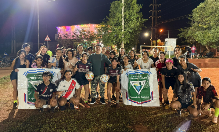 El Club Femenino de Obras está participando en una nueva edición de la Liga de Eldorado, y el Municipio de Iguazú brindó su apoyo para facilitar el traslado del equipo y entregó elementos de entrenamiento como pelotas y conos.