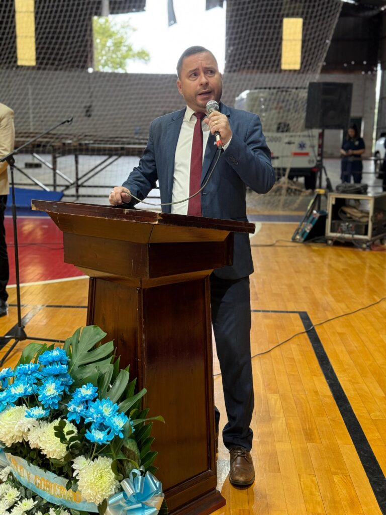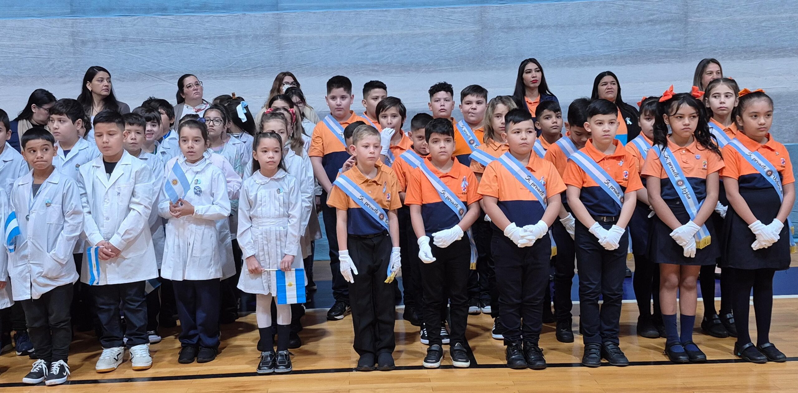Este viernes se llevó a cabo un emotivo acto por el Día de la Bandera en el Polideportivo Municipal de Puerto Iguazú, donde alumnos de cuarto grado de seis establecimientos educativos realizaron la tradicional promesa de lealtad a la bandera nacional.