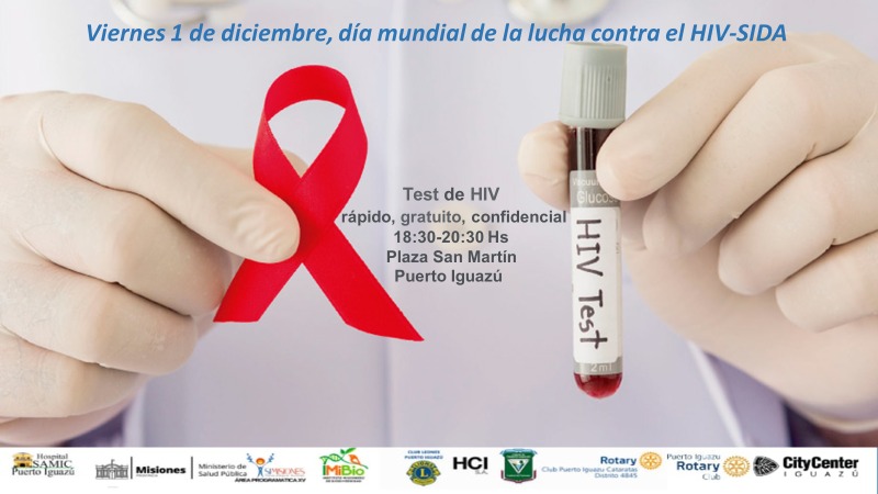 En Iguazú se realizarán testeos rápidos, gratuitos y confidenciales de 18:30 a 20:30 hs en la Plaza San Martín. Este día es una oportunidad para apoyar a aquellos involucrados en la lucha contra el VIH y para mejorar la comprensión del VIH como un problema de salud pública mundial.
