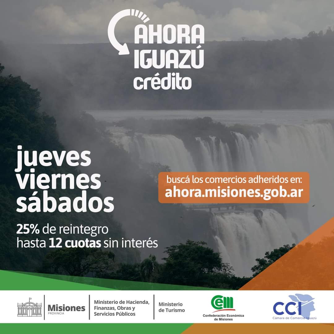 Si estás en PuertoIguazú, porque residís ahí o estás de paseo, los jueves, viernes y sábados podés acceder a los beneficios de los programas Ahora Iguazú Débito y Ahora Iguazú Crédito, que seguirán otorgando reintegros del 25% y hasta 12 cuotas sin interés hasta el 31 de diciembre de este año.