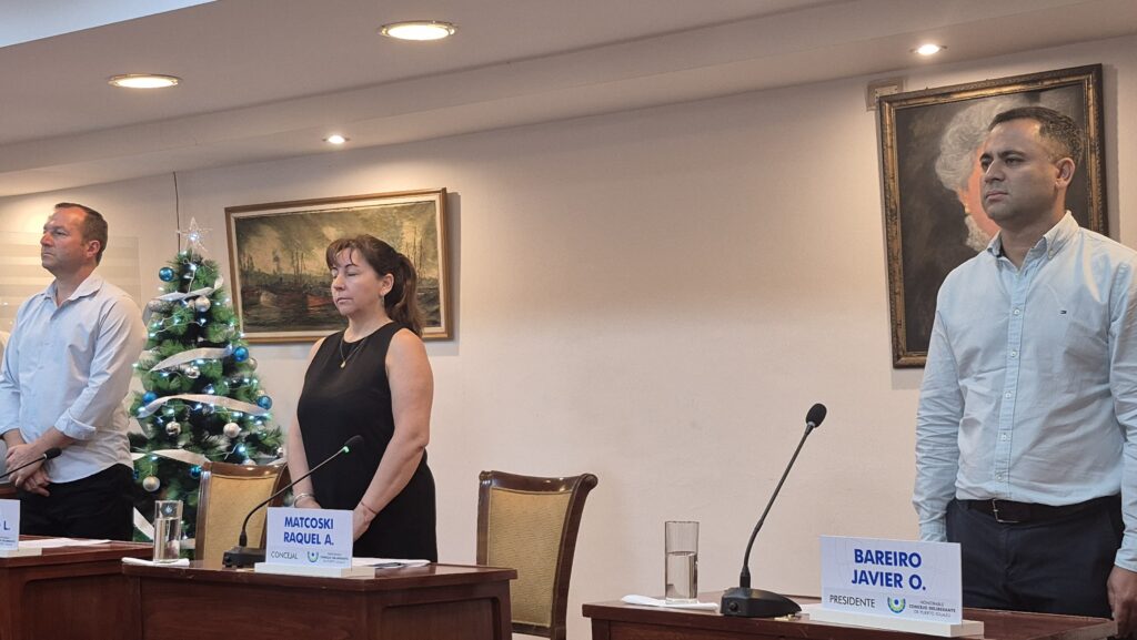 En una sesión marcada por la continuidad y la renovación, el Honorable Concejo Deliberante de Puerto Iguazú definió su conducción para el período entrante. Con el respaldo de sus pares, Javier Bareiro fue reelecto como presidente del cuerpo, demostrando así la confianza depositada en su gestión. Acompañándolo en la mesa directiva estarán, Rodrigo Lugo como vicepresidente primero y Humberto Pereyra como vicepresidente segundo.