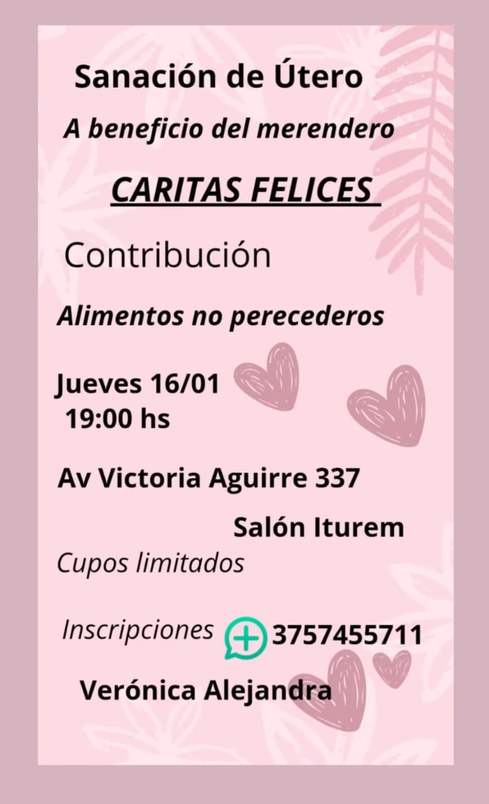 La contribución para participar en este encuentro es un alimento no perecedero, que será donado al merendero Caritas Felices, que trabaja incansablemente por apoyar a las familias más vulnerables de nuestra comunidad.