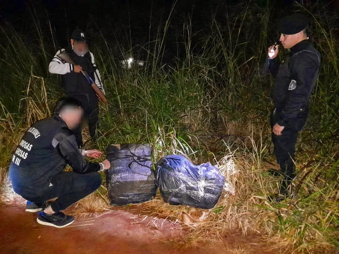 Los agentes encubiertos comenzaron con el despliegue, cerca de las 23:00 horas de ayer, luego de obtener datos precisos que señalaban un posible contrabando de drogas en el sector antes mencionado. En ese contexto, observaron a dos personas transportando dos bultos grandes en sus espaldas y al darles la voz de alto, los individuos hicieron caso omiso y arrojaron los paquetes a un costado del camino para darse a la fuga entre la espesura del monte.