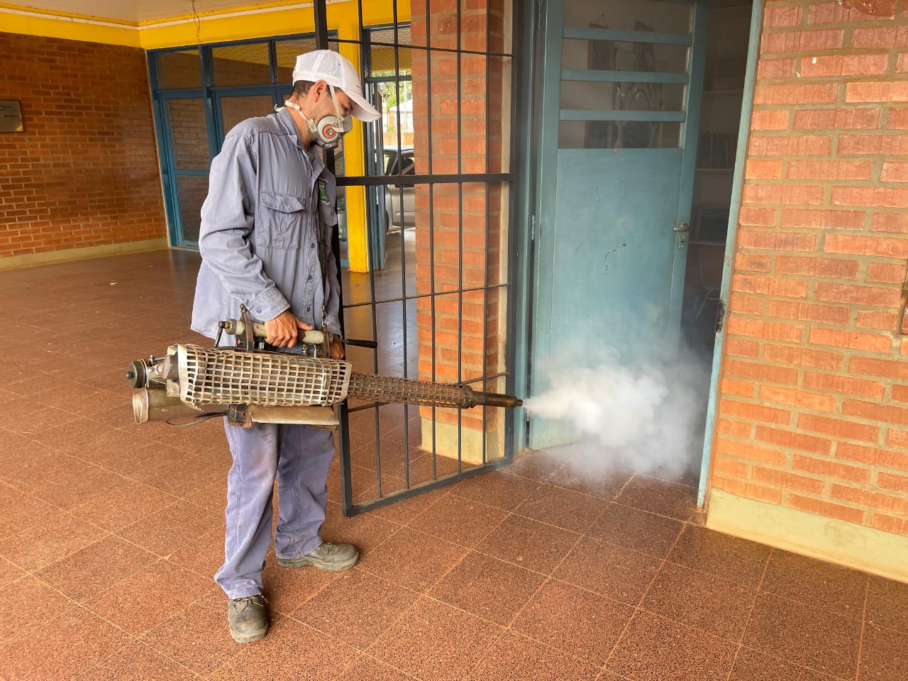 Las fumigaciones se estan realizando en las distintas escuelas del municipio para prevenir la propagación de insectos, como ser mosquitos, arañas, hormigas, cucarachas, alacranes y de esta manera evitar accidentes dentro de los establecimientos, así lo señalaba Carlos Britez jefe departamento de vectores.