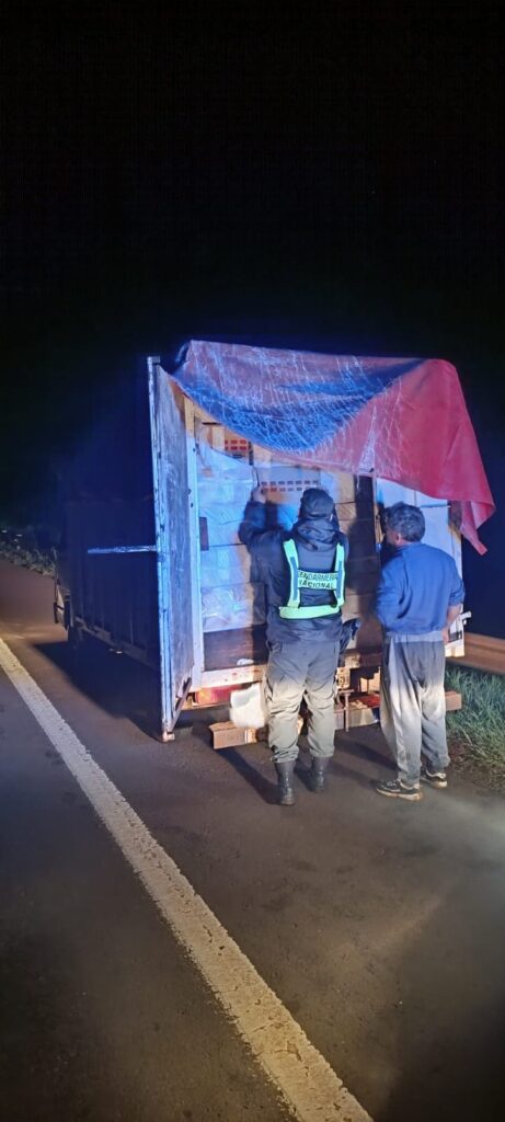 En el marco de un operativo de rutina sobre la Ruta Nacional 12, efectivos del Escuadrón 13 “Iguazú” del Grupo de Seguridad Vial Urugua-I interceptaron dos vehículos que transportaban una importante carga de cigarrillos en infracción a la ley.