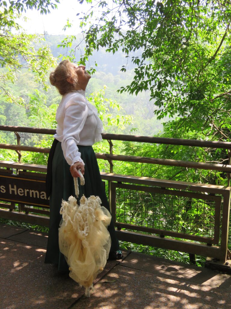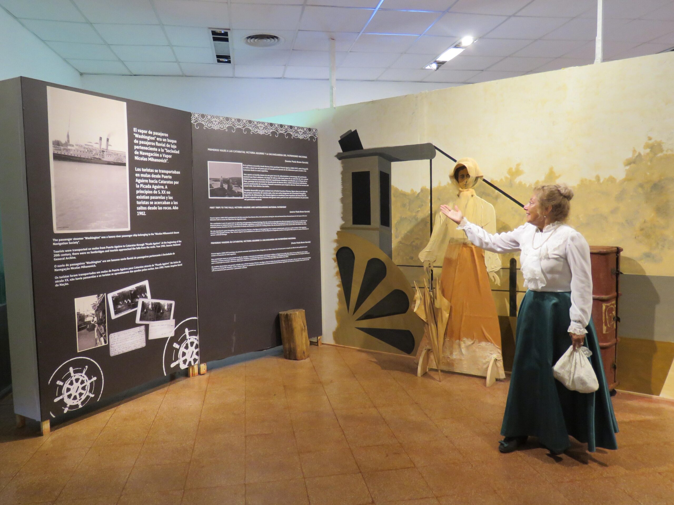 Durante la actividad, Marcela López interpreta a la histórica figura de la Señorita Victoria Aguirre, con un guion especialmente diseñado y un cuidado vestuario de época. La puesta en escena se inicia en el Centro de Visitantes “Yvyrá Retá” y culmina frente a una fotografía exhibida en la muestra histórica del Viejo Hotel Cataratas, integrando el recorrido con elementos patrimoniales del lugar.