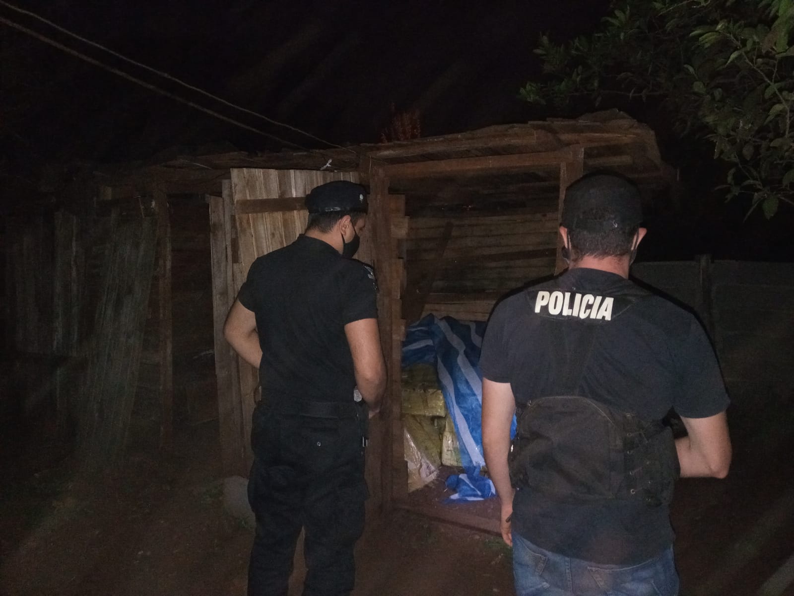 Los sospechosos cruzaron por un predio abandonado donde los efectivos se encontraron con los paquetes de marihuana- de gran tamaño- que estaban acumulados en el interior de un depósito de madera.