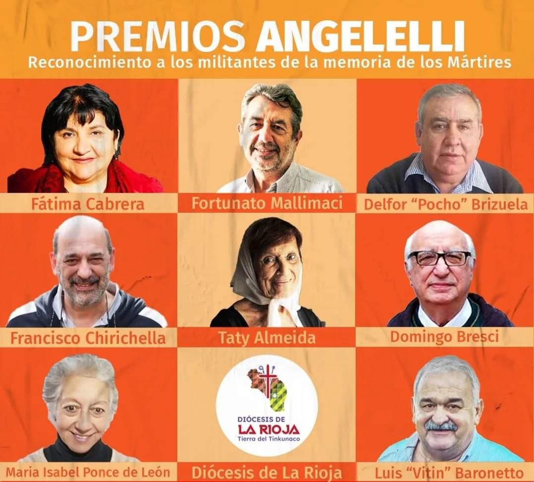Los homenajeados serán Taty Almeida, integrante de Madres de Plaza de Mayo Línea Fundadora; Fátima Cabrera, militante popular y alfabetizadora; Delfor «Pocho» Brizuela, exsacerdote de la diócesis de Angelelli y secretario de Derechos Humanos de La Rioja; Fortunato Mallimaci, sociólogo e investigador del Conicet, especializado en religión; Domingo Bresci, integrante del Grupo de Curas en la Opción por los Pobres y uno de los fundadores del Movimiento de Sacerdotes para el Tercer Mundo.